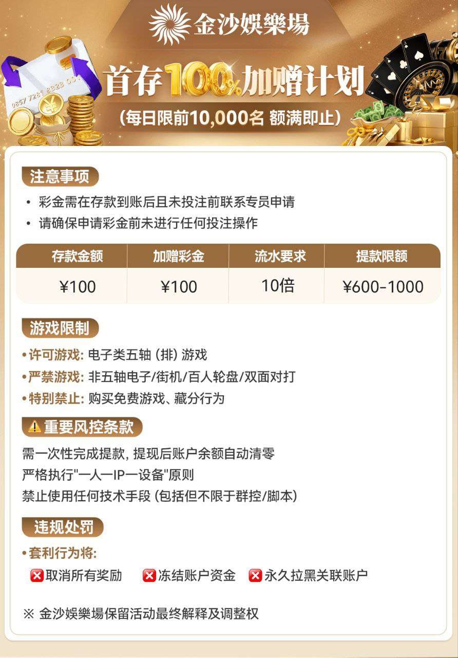 100+100流水要求10倍流水,最低提款600,最高1000,本彩15倍流水。仅限投注低轴电子,具体规则看下图